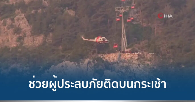 เจ้าหน้าที่จากหน่วยกู้ภัยของตุรกียังคงพยายามช่วยเหลือผู้โดยสารของรถกระเข้าลอยฟ้าที่ติดค้างหลังจากรถกระเช้าคันหนึ่งชนกระแทกกับเสาที่หัก เหตุเกิดในวันศุกร์ที่จังหวัดอันตัลยา ทางใต้ของตุรกี ทำให้มีผู้เสียชีวิต 1 รายและบาดเจ็บอีก 10 ราย