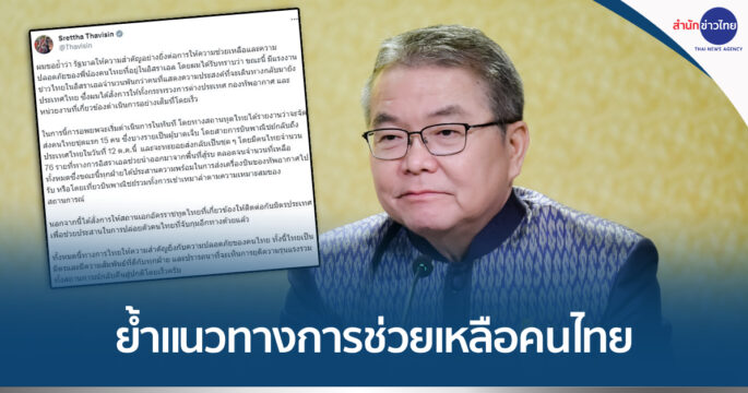 โฆษกรัฐบาล เผยนายกฯ ย้ำแนวทางการช่วยเหลือคนไทยในอิสราเอล ให้ความสำคัญกับความปลอดภัย ปรารถนาเห็นการยุติความรุนแรงให้สถานการณ์กลับคืนสู่ปกติโดยเร็ว