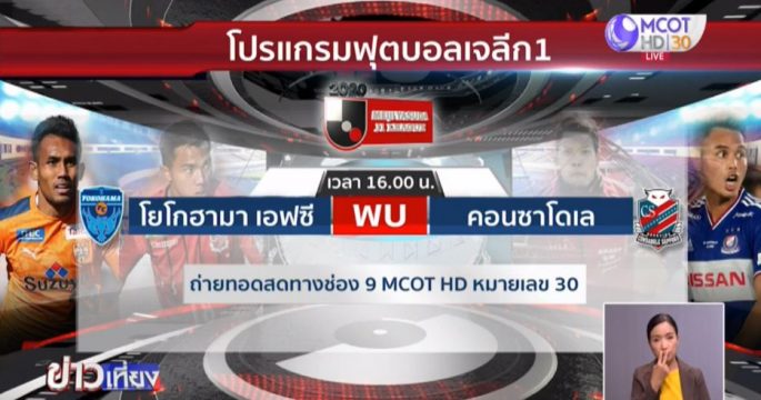 ช่อง 9 MCOT HD เตรียมถ่ายทอดสดฟุตบอลเจลีก สโมสรคอนซาโดเล ซัปโปโร ที่มี 2 นักเตะไทยร่วมทีม ไปเยือน โยโกฮามา เอฟซี ติดตามจากรายงานพิเศษ