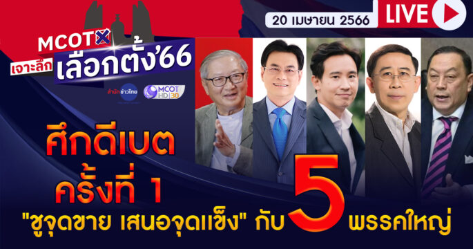 ศึกดีเบต ครั้งที่ 1 “ชูจุดขาย เสนอจุดแข็ง” 5 พรรคใหญ่ #MCOTเจาะลึกเลือกตั้ง66 | 20 เม.ย.66