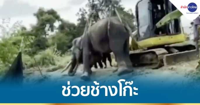 ช่วยช้างโก๊ะ ไถลลงตลิ่งเจ็บ