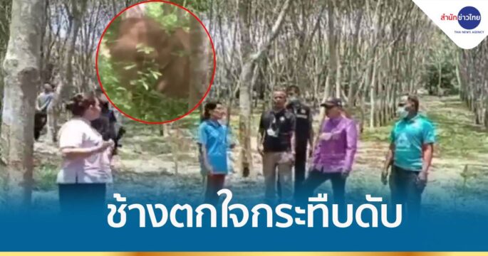 หนุ่มวัย 20 ปี ขี่รถจักรยานยนต์เข้าไปในสวนยาง จุดที่ควาญผูกช้างไว้ระหว่างรอทำงาน ช้างอาจตกใจ ใช้งวงฟาดกระทืบร่างแหลก กว่า 3 ชั่วโมง จึงนำศพออกได้