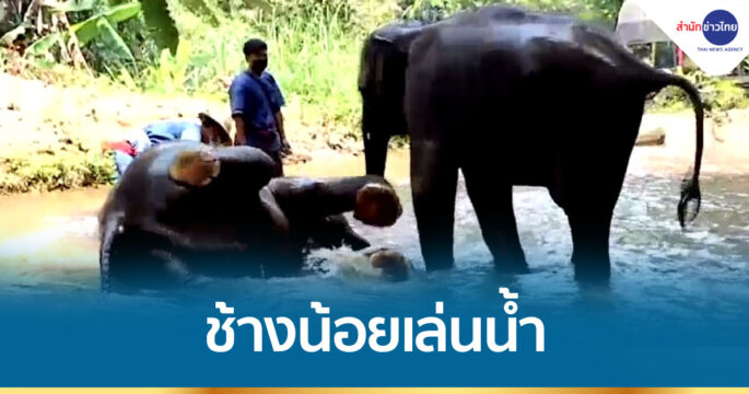 ช้างน้อยเล่นน้ำรับสงกรานต์ สุดน่ารัก