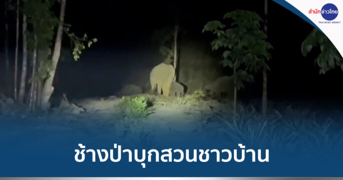 ช้างป่าบุกสวนผลไม้ชาวบ้าน จ.ตราด จนท.แบ่งกำลังผลักดันเข้าป่า