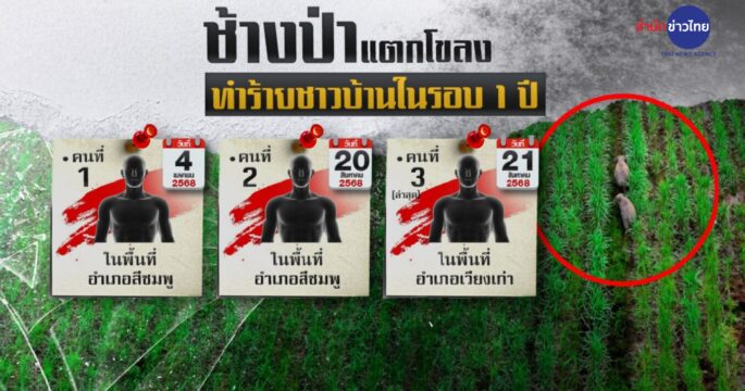 ช้างป่าแตกโขลง ทำร้ายชาวบ้านเสียชีวิต-บาดเจ็บ 2 วันติด