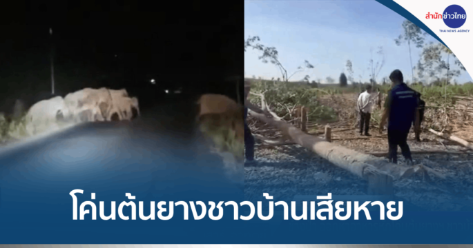 ช้างป่ากว่า 30 ตัว ออกมาอาหาร หักโค่นกินยอดต้นยางพาราชาวบ้าน เสียหายกว่า 10 ไร่