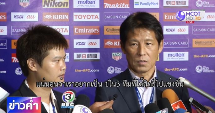 อากิระ นิชิโนะ กุนซือทีมชาติไทย หวังทีมช้างศึก 23 ปี ทะลุเข้ารอบสุดท้ายโอลิมปิกเกมส์ 2020 ที่ประเทศญี่ปุ่น ยอมรับคู่แข่งในกลุ่มหนักทุกทีม