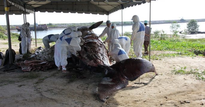 พบซากวาฬบรูด้าหนักกว่า 8 ตัน หัวขาดเกยตื้นติดโขดหิน