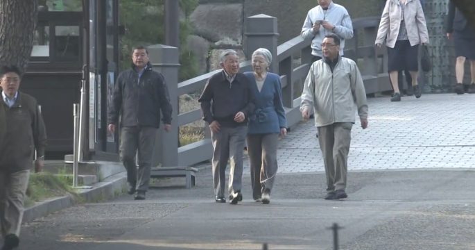 สมเด็จพระจักรพรรดิอากิฮิโตะ และสมเด็จพระจักรพรรดินีมิชิโกะ ของญี่ปุ่น เสด็จฯ ทอดพระเนตรซากุระภายในสวนรอบพระราชวังอิมพีเรียล กลางกรุงโตเกียว