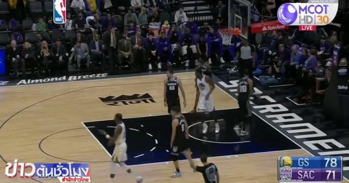 โกลเดน สเตท วอริเออร์ส แชมป์เก่า บุกชนะ ซาคราเมนโต คิงส์ ถึงถิ่นไปอย่างสนุก 127-123 คะแนน และทั้ง 2 ทีมยังสร้างสถิติใหม่ด้วยการชู้ต 3 แต้มรวมกันถึง 41 ลูก