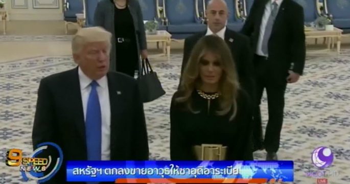 ประธานาธิบดีโดนัลด์ ทรัมป์ ผู้นำสหรัฐ ประกาศข้อตกลงขายอาวุธยุทโธปกรณ์มูลค่า 110,000 ล้านดอลลาร์สหรัฐ (ราว 3.8 ล้านล้านบาท) ให้แก่ซาอุดีอาระเบีย