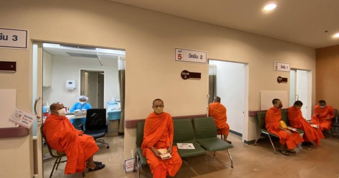 ฉีด”ซิโนฟาร์ม” ซึ่งได้รับการบริจาคจากมูลนิธิแพทยศาสตร์ตำรวจฯ ให้พระภิกษุ สามเณร ผู้ให้บริการรถสาธารณะ และประชาชนโดยทั่วไป เสริมการป้องกันป้องกัน COVID- 19