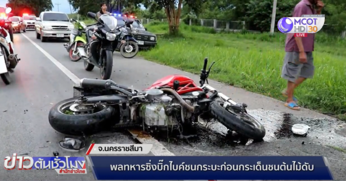 -พลทหารซิ่งบิ๊กไบค์ชนกระบะ ก่อนกระเด็นชนต้นไม้ เสียชีวิต ถนนมิตรภาพสายเก่า อ.ปากช่อง จ.นครราชสีมา