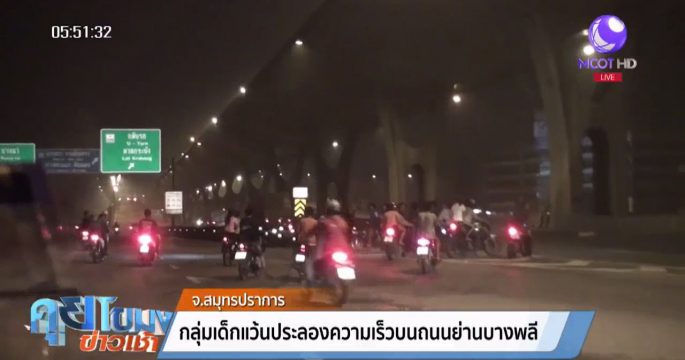 กลุ่มเด็กแว้นรวมตัวประลองความเร็วบนถนนย่านบางพลี