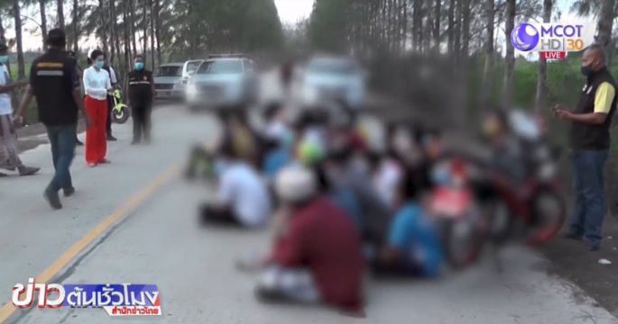 ฝ่ายปกครอง-ตำรวจ บุกล้อมจับกลุ่มวัยรุ่นฝ่าฝืน พ.ร.ก.ฉุกเฉิน ตั้งก๊วนขี่รถจักรยานยนต์ประลองความเร็วกว่า 100 คัน ใน ต.ท่าทองใหม่ อ.กาญจนดิษฐ์ จ.สุราษฎร์ธานี