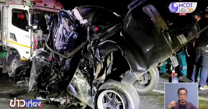 หนุ่มช่างยนต์ซิ่งรถกระบะชนอัดก๊อปปี้รถบรรทุก 10 ล้อ บนถนนบายพาส อ.เมืองตรัง คนขับรถกระบะเสียชีวิตคาที่ ส่วนในรถพ่วงมีผู้บาดเจ็บสาหัส 2 คน