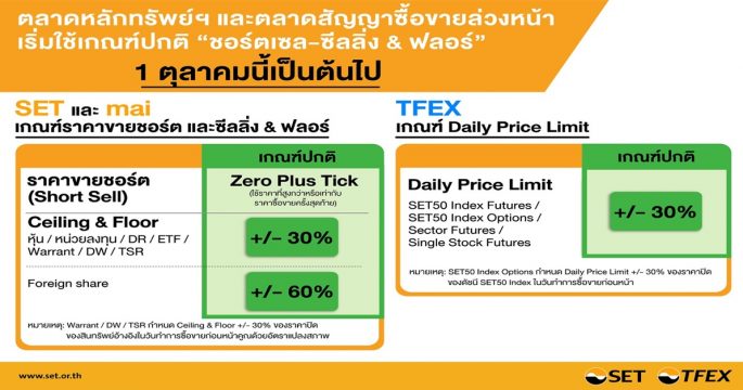 ตลาดหลักทรัพย์ กำลังพิจารณาอาจขยายเกณฑ์ใหม่ชอร์ตเซล,ซีลลิ่ง-ฟลอร์