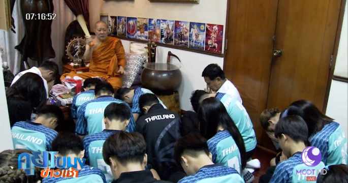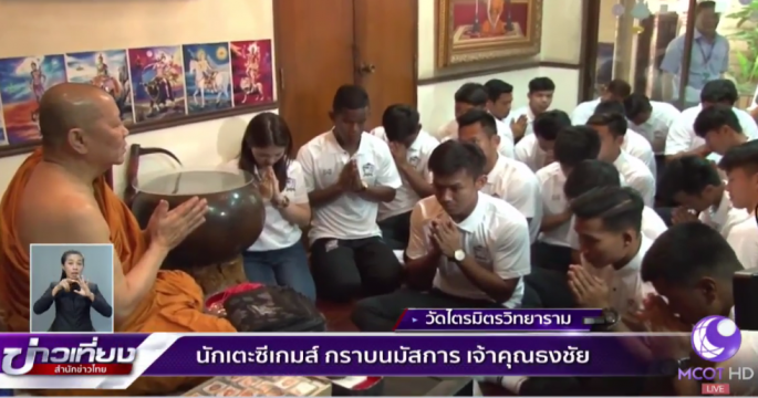 “เจ้าคุณธงชัย”พระพรหมมังคลาจารย์ ผู้ช่วยเจ้าอาวาสวัดไตรมิตรวิทยาราม ให้พรนักเตะทีมชาติไทยคว้าเหรียญทองซีเกมส์กลับมาให้ได้