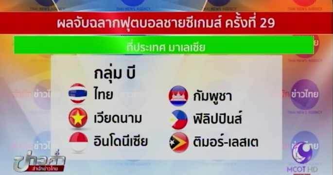 ผลการจับสลากฟุตบอลชายซีเกมส์ ครั้งที่ 29 ที่มาเลเซีย ทีมชาติไทย อยู่กลุ่มบี ร่วมกับเวียดนาม อินโดนีเซีย กัมพูชา ฟิลิปปินส์ และติมอร์-เลสเต
