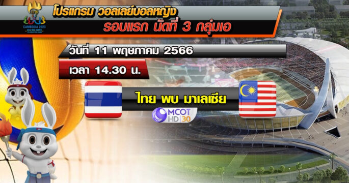 ช่วงเชียร์ไทยสุดใจ สู่เจ้าเหรียญทองซีเกมส์ 2023 วันนี้ ส่งกำลังใจเชียร์ทัพนักตบลูกยางสาวไทย จะพบกับมาเลเซีย เวลา 14.30 น. ช่อง 9 กด 30 ถ่ายทอดสด
