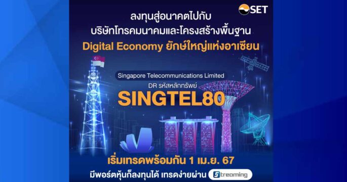 ตลาดหลักทรัพย์แห่งประเทศไทย รับ “SINGTEL80” ตราสารแสดงสิทธิในหลักทรัพย์ต่างประเทศ (Depositary Receipt หรือ DR) ที่อ้างอิงหุ้น Singapore Telecommunications Limited ผู้ให้บริการโครงสร้างพื้นฐานด้านโทรคมนาคมรายใหญ่ของสิงคโปร์ ออกโดยธนาคารกรุงไทย เริ่มซื้อขายในตลาดหลักทรัพย์ฯ 1 เม.ย.นี้