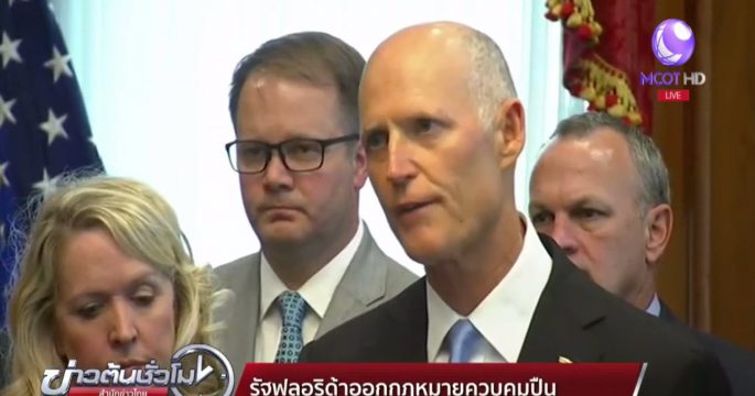 ผู้ว่าการรัฐฟลอริด้า ลงนามในกฎหมายควบคุมอาวุธปืน หลังเกิดเหตุกราดยิงที่โรงเรียนมัธยมในรัฐฟลอริดาเมื่อกลางเดือนที่แล้ว ทำให้มีผู้เสียชีวิตถึง 17 คน