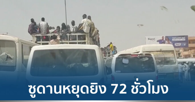 กองทัพซูดาน และกองกำลังเคลื่อนที่เร็วหรืออาร์เอสเอฟ ตกลงหยุดยิง 72 ชั่วโมง เปิดทางช่วยเหลือด้านมนุษยธรรม ก่อนหยุดยิงฝ่ายกองทัพซูดานโจมตีพื้นที่ยึดครองของฝ่ายตรงข้าม ทำให้พลเรือนเสียชีวิต 17 คน