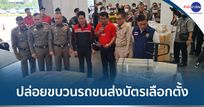 สำนักงานคณะกรรมการการเลือกตั้ง สำนักงานตำรวจแห่งชาติร่วมกับบริษัทไปรษณีย์ไทย จำกัด แถลงข่าวพิธีปล่อยขบวนรถขนส่งบัตรเลือกตั้งไปยังเขตเลือกตั้งทั่วประเทศ ประสานเสียงยืนยัน พร้อมจัดเลือกตั้ง ยกเว้นซูดาน ที่มีปัญหาความไม่สงบ