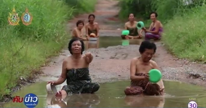ขอนแก่นก็มี กลุ่มผู้สูงอายุนับสิบนุ่งกระโจมอกอาบน้ำบ่อกลางถนน หลังหน่วยงานรัฐไม่มาซ่อมถนนชำรุด