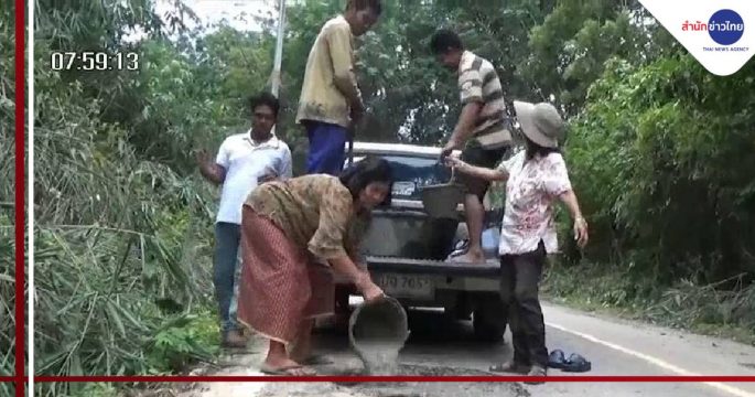 ชาวบ้านอีต่อง จ.กาญจนบุรี ต้องช่วยกันซ่อมแซมถนนทางไปแหล่งท่องเที่ยวสำคัญของจังหวัด ซึ่งอยู่ในสภาพเป็นหลุมเป็นบ่อ หลังไร้การเหลียวแลจากหน่วยงานที่เกี่ยวข้อง หวั่นนักท่องเที่ยวประสบอุบัติเหตุ