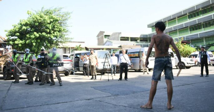 กทม.สานพลังเครือข่ายซ้อมแผนการเผชิญเหตุบุคคลคลุ้มคลั่งจากการใช้ยาเสพติดในชุมชนตามกลวิธี “หนี ซ่อน สู้”
