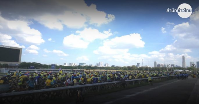 นักปั่นภายในสนามม้านางเลิ้ง เริ่มการซักซ้อมตั้งขบวนจักรยาน เพื่อเริ่มกิจกรรมซ้อมใหญ่ ‘Bikeอุ่นไอรัก’ บ่าย 3 โมงเย็นนี้