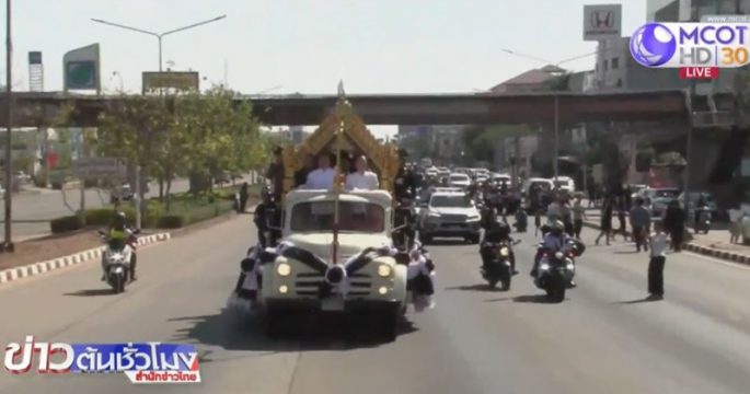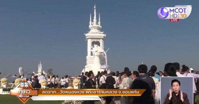 ขบวนสรีรสังขารหลวงพ่อคูณ เคลื่อนจากมหาวิทยาลัยขอนแก่น ไปยังฌาปนสถานชั่วคราว วัดหนองแวง พระอารามหลวง ด้านหลังพุทธมณฑลอีสาน