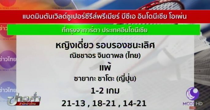 “ณิชชาอร จินดาพล” พ่าย นักตบลูกขนไก่เจ้าภาพ ตกรอบรองชนะเลิศ แบดมินตันโคเรีย มาสเตอร์ส 2017 ขณะที่ “นำโชค ตันติโภคากุล” รั้งอันดับ 3 ร่วม กอล์ฟเอเชียนทัวร์ที่จีน