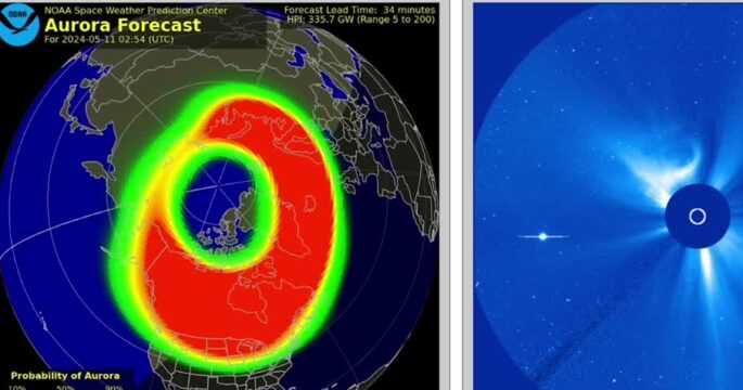 แมริแลนด์ 11 พ.ค.- หน่วยงานของสหรัฐที่ติดตามกิจกรรมของดวงอาทิตย์แจ้งเตือนในวันนี้ว่า การสื่อสารผ่านทางคลื่นวิทยุ ระบบกำหนดตำแหน่งบนโลก หรือจีพีเอส (GPS) และดาวเทียม อาจได้รับผลกระทบในช่วงสุดสัปดาห์นี้ อันเป็นผลจากเปลวสุริยะ (solar flare) รุนแรง ศูนย์พยากรณ์อากาศอวกาศขององค์การบริหารมหาสมุทรและชั้นบรรยากาศแห่งชาติของสหรัฐหรือโนอา (NOAA) แจ้งว่า เปลวสุริยะที่มีความรุนแรงเช่นนี้เคยเกิดขึ้นครั้งหลังสุดเมื่อเดือนตุลาคม 2546 ครั้งนั้นทำให้การติดตั้งระบบไฟฟ้าในสวีเดนและแอฟริกาใต้ได้รับความเสียหาย โนอาคาดว่า พายุแม่เหล็กโลกน่าจะปลดปล่อยก้อนมวลจากบรรยากาศชั้นโคโรนาของดวงอาทิตย์มายังโลกหลายครั้งในช่วงสุดสัปดาห์นี้ โดยเกิดจากการระเบิดที่บริเวณจุดดับบนดวงอาทิตย์กลุ่มใหญ่ซึ่งมีขนาดใหญ่กว่าเส้นผ่านศูนย์กลางโลกถึง 17 เท่า.-814.-สำนักข่าวไทย