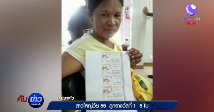 สาวใหญ่วัย 55 จ.สระแก้ว ดวงเฮง ถูกรางวัลที่ 1 จำนวน 5 ใบ รวมเป็นเงิน 30 ล้านบาท รีบขึ้นโรงพักแจ้งความเพื่อเป็นพยานหลักฐาน