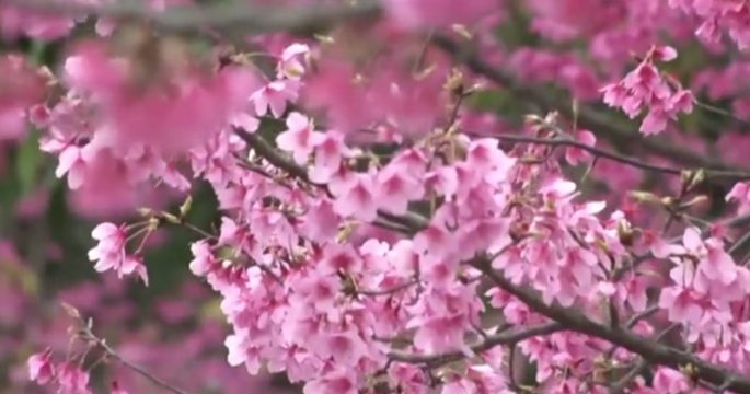 ดอกซากุระเบ่งบานพร้อมกันกลายเป็นทุ่งสีชมพูบานสะพรั่งเมืองกานโจวในมณฑลเจียงซีทางตะวันออกของจีน ช่วยเสริมบรรยากาศเทศกาลตรุษจีนให้สดใสยิ่งขึ้น