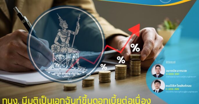 ศูนย์วิจัยกรุงไทย คาด กนง.จะปรับขึ้นดอกเบี้ยนโยบายอีกในการประชุมครั้งหน้า เพื่อควบคุมเงินเฟ้อ หลังเศรษฐกิจฟื้นตัวต่อเนื่องทั้งท่องเที่ยวและภาคบริการ