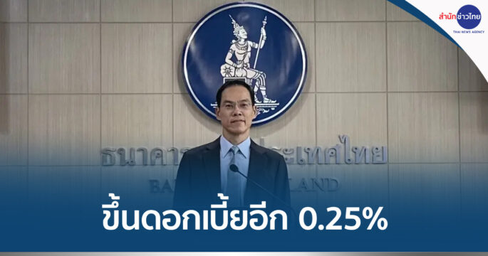 มติเอกฉันท์ กนง.ขึ้นดอกเบี้ยอีก 0.25% เป็น 2.50%