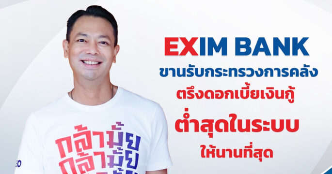 EXIM BANK ขานรับนโยบายกระทรวงการคลังตรึงอัตราดอกเบี้ยเงินกู้ต่ำสุดในระบบให้นานที่สุด