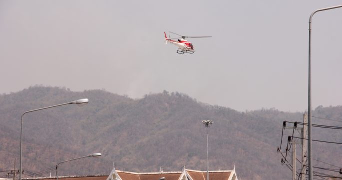 ไฟป่าลามรอบทิศดอยพระบาทใกล้ตัวเมืองลำปาง ระดมชุดดับไฟทั้งภาคพื้นและอากาศ ฮ.ทส.บินโปรยน้ำบนเขาเร่งสกัดแล้ว 30 เที่ยว