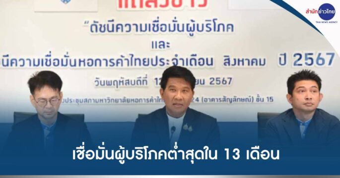 ดัชนีความเชื่อมั่นของผู้บริโภคเดือน ส.ค.67 อยู่ในระดับต่ำสุดในรอบ 13 เดือน กังวลเศรษฐกิจฟื้นตัวช้า-มาตรการกระตุ้นเศรษฐกิจรัฐบาลใหม่ไม่ชัดเจน ม.หอการค้าไทย คาดหากดิจิทัลวอลเล็ต ทันไตรมาส 4/67 หนุนเศรษฐกิจไทยปีนี้โต 2.6-2.8%