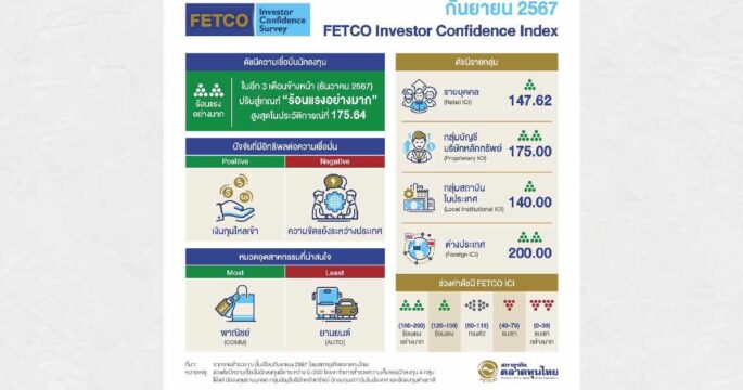 FETCO ระบุดัชนีความเชื่อมั่นนักลงทุน 3 เดือนข้างหน้าร้อนแรงอย่างมาก