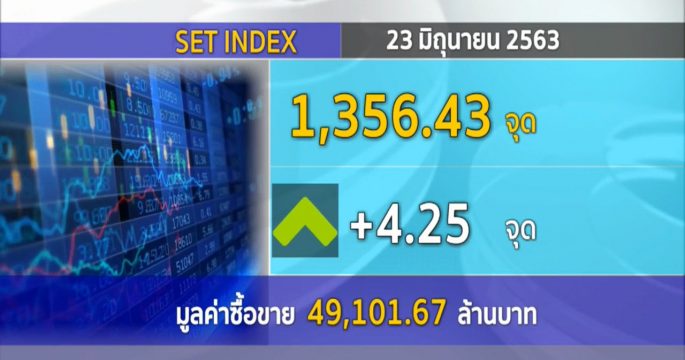 หุ้นไทยบวก 4.25 จุด ดัชนีปิดที่ 1,356.43 จุด จับตา กนง.-ส่งออกพรุ่งนี้