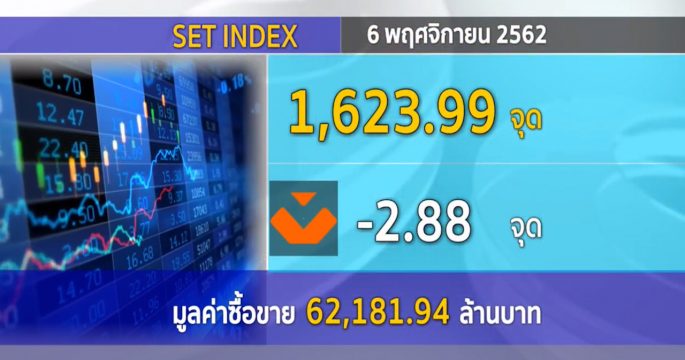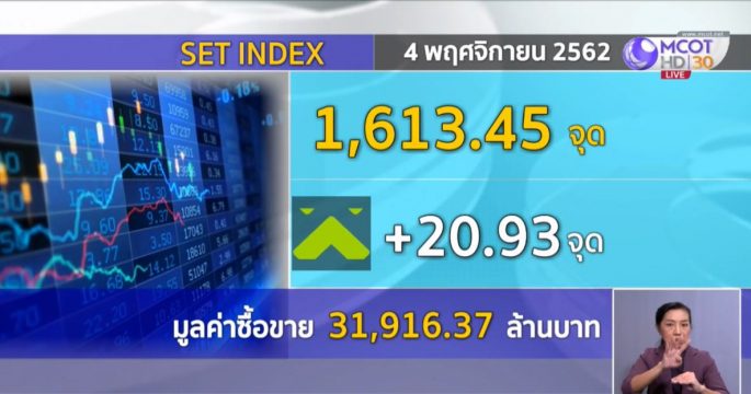 หุ้นไทยภาคเช้าปิดตลาดที่ 1,604.35 จุด บวกเพิ่มเล็กน้อยที่ 2.12 จุด มูลค่าการซื้อขาย 20,006.83 ล้านบาท จากความหวังเจรจาการค้าสหรัฐ-จีนออกมาดี แต่ตลาดหุ้นไทยมีแรงถ่วงจากผลประกอบการบริษัทจดทะเบียนงวดไตรมาส 3