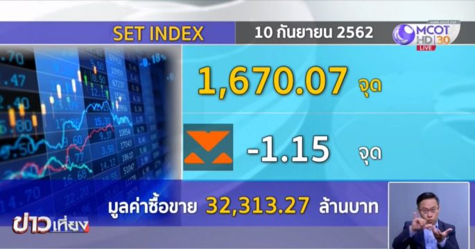 หุ้นไทยปิดตลาดภาคเช้า ลดลง 1.15 จุด ปิด 1,670.07 จุด มูลค่าซื้อขาย 32,313.27 ล้านบาท