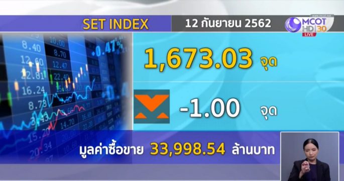 ดัชนีหุ้นไทยปิดตลาดภาคเช้า ลดลง 1.00 จุด อยู่ที่ 1,673.03 จุด มูลค่าซื้อขาย 33,998.54 ล้านบาท