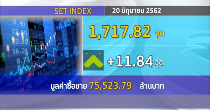 ดัชนีหุ้นไทยวันนี้ (20 มิ.ย.) ปิดบวก 11.84 จุด อยู่ที่ 1,717.82 จุด มูลค่าการซื้อขาย 75,523.79 ล้านบาท