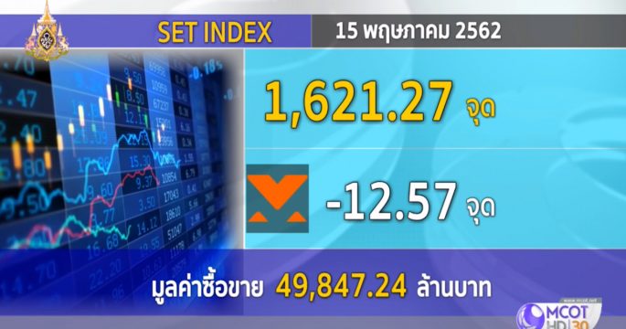 ดัชนีตลาดหลักทรัพย์ไทย ปิดวันนี้ที่ระดับ 1,621.27 จุด ลดลง 12.57 จุด มูลค่าการซื้อขาย 49,847.24 ล้านบาท