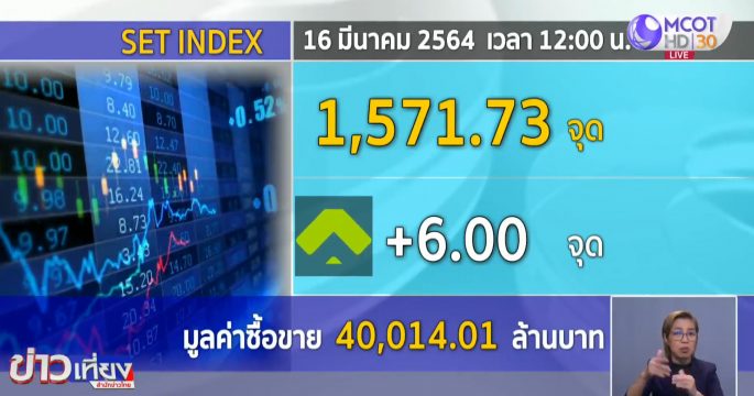 ตลาดหุ้นไทย เปิดมาบากแรง แม้ผู้ติดเชื้อบ้านเราเพิ่มขึ้นเรื่อยๆ แต่ตลาดหุ้นไทยตอบรับตลาดหุ้นโลก ช่วงเที่ยง บวก 18.39 จุด ดัชนีอยู่ที่ 1,567.35 จุด มูลค่าการซื้อขาย 42,186.65 ล้านบาท